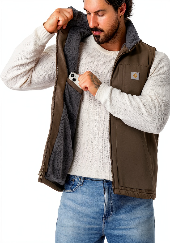 Ideal for outdoor work environments like construction, landscaping, or warehouse settings, this vest provides an extra layer of warmth without restricting movement. It’s also suitable for casual outings, hiking, or daily commutes in cooler weather, thanks to its comfortable fit and practical design. The target audience includes men seeking reliable, multi-purpose outerwear that combines utility with everyday style.